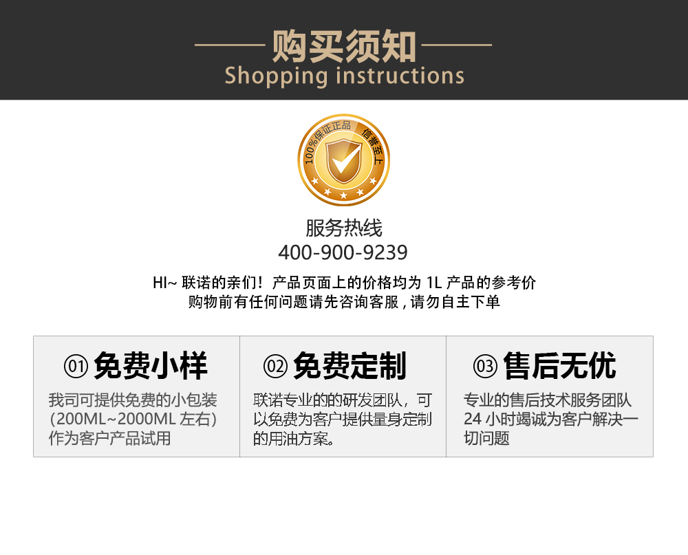 外 觀: 黃色透明液體 pH 值: 8.0~10.0 使用濃度: 5%~10%